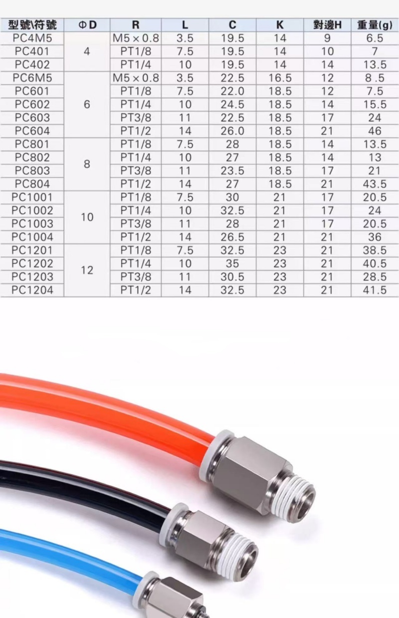 气管接头螺纹直通PC快速插接头